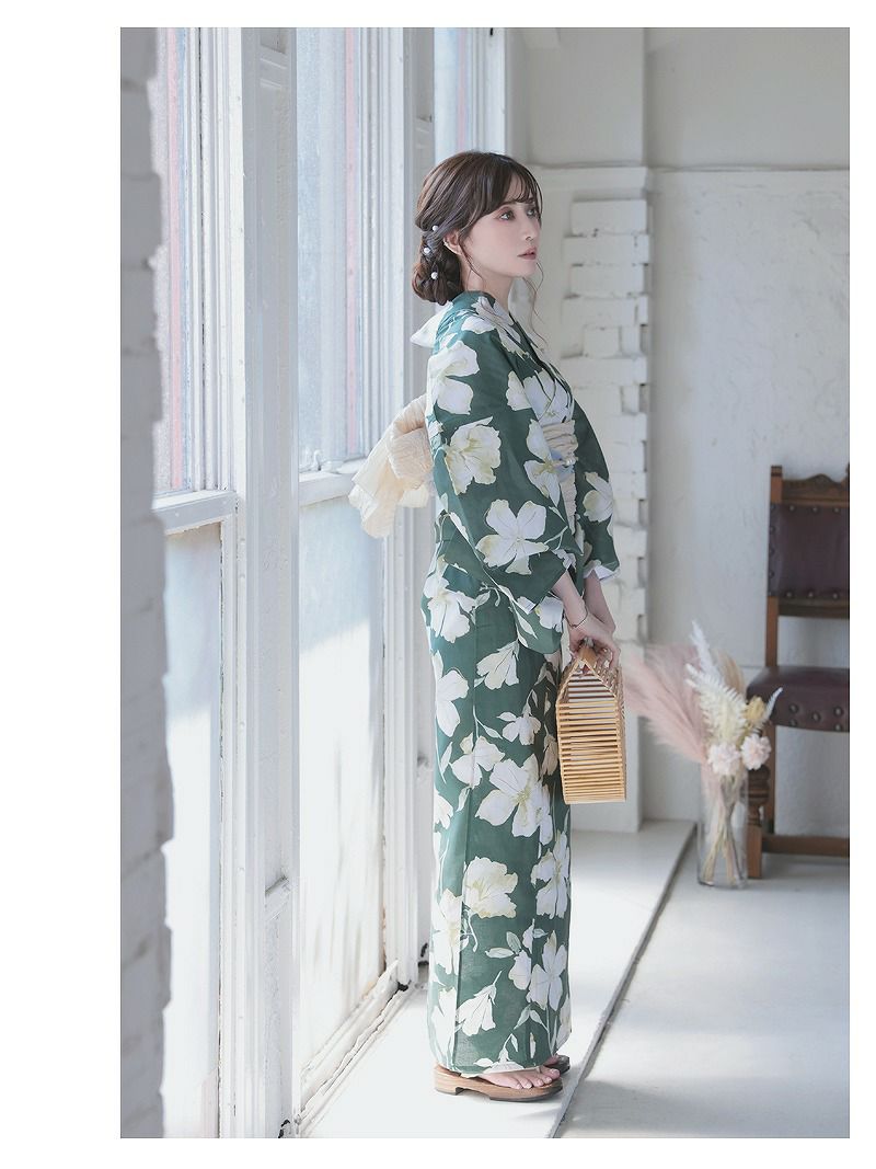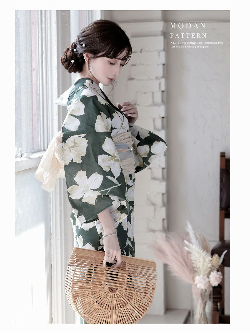 上品な色気をまとい、まわりと差がつく大人浴衣 浴衣 グリーン牡丹ホワイト花柄大人浴衣 加賀美早紀 着用 レディース浴衣【Ryuyu】(フリーサイズ)(グリーン)