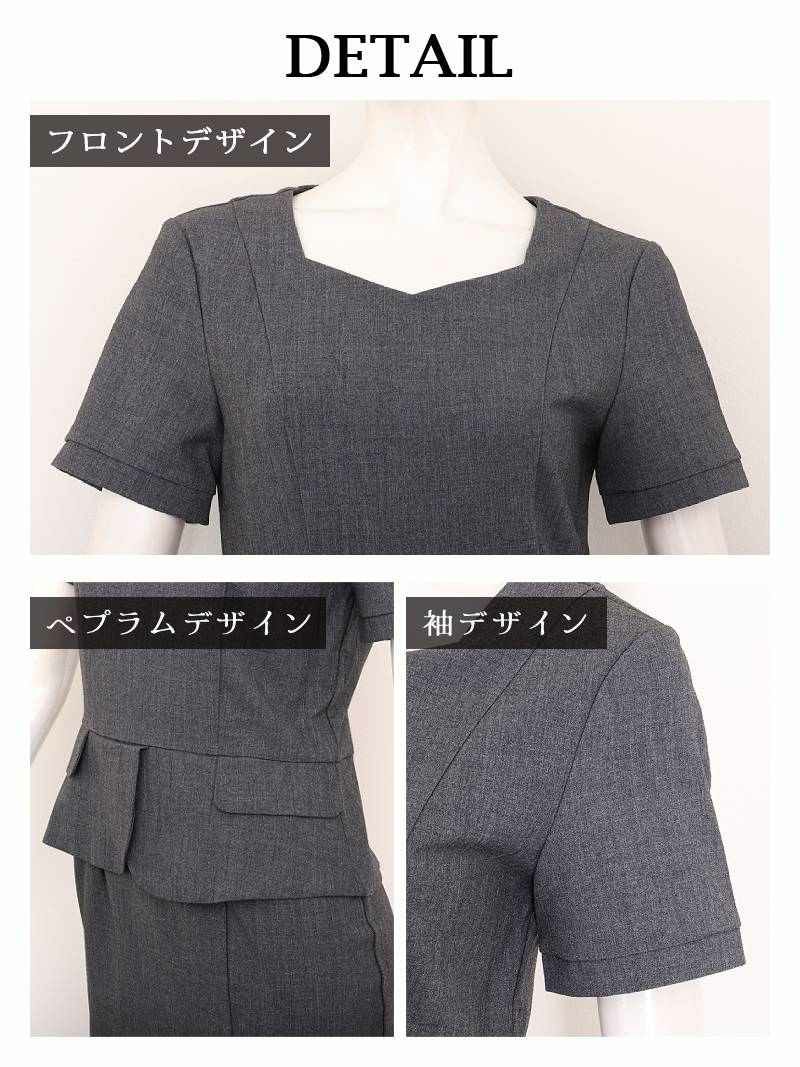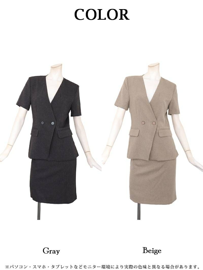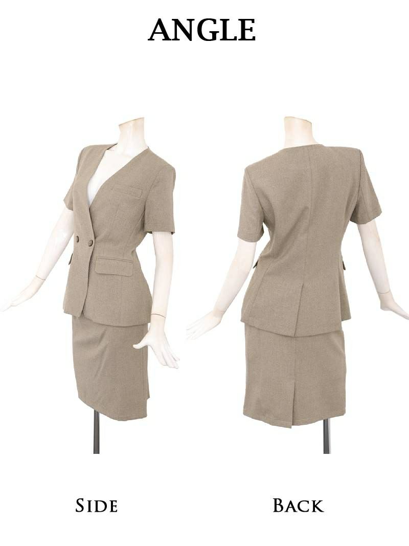 膝丈で上品に決まる大きいサイズスーツ♪ スーパーSALE¥12800→¥10239! 上質シンプル半袖キャバスーツ 加賀美早紀 着用 キャバスーツ【Belsia】(S/M/L/XL(2L)/XXL(3L))(グレー/ベージュ)