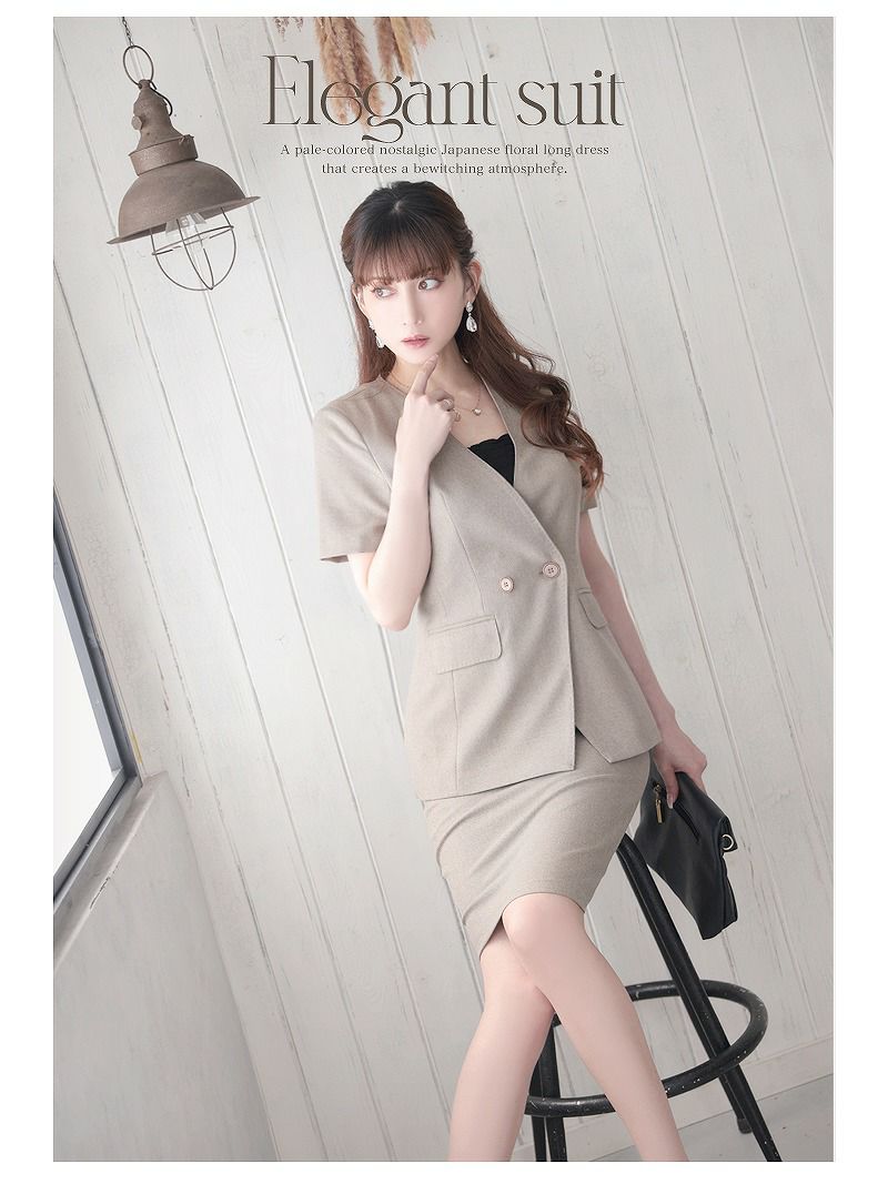上品な装いで大人っぽく スーパーSALE¥9980→¥8981! 膝丈セットアップタイトキャバスーツ 加賀美早紀 着用 レディーススーツ【Belsia】(S/M/L/XL(2L)/XXL(3L))(ベージュ/グリーン/ブラック)