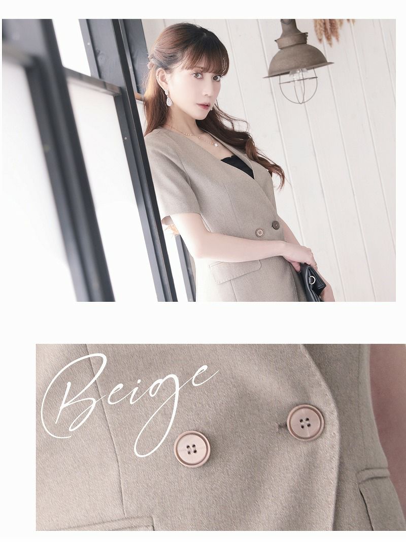 体型カバーしつつ上品に魅せるキャバスーツ スーパーSALE¥12800→¥10239! エレガントシンプルデザイン半袖キャバスーツ 加賀美早紀 着用 キャバスーツ【Belsia】(S/M/L/XL(2L)/XXL(3L))(グレー/ベージュ)