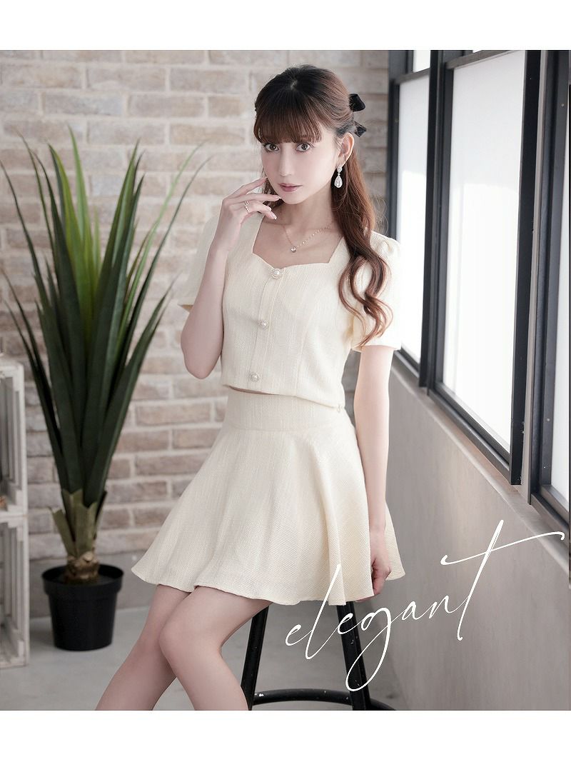 ボレロ風のジャケットでスタイルアップ スーパーSALE¥12800→¥11520! 韓国風ラメツイードキャバスーツ 加賀美早紀 着用セットアップ【BelsiaLUX】(S/M/L)(オフホワイト/ピンク/グレー)