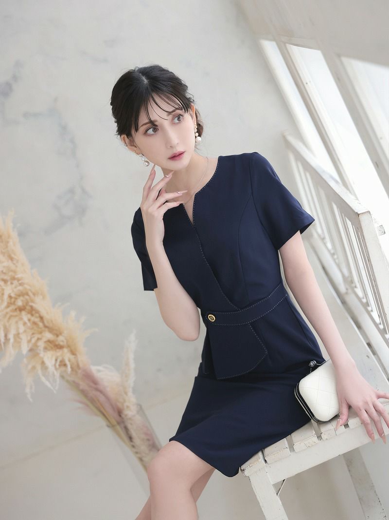 視線を奪うペプラムシルエットで、メリハリのある圧倒的な美ボディを。 ダブルボタンペプラムジャケット&タイトスカートセットアップスーツ 加賀美早紀 着用キャバスーツ【BelsiaLUX】(S/M/L/XL(2L))(ネイビー/グレー)