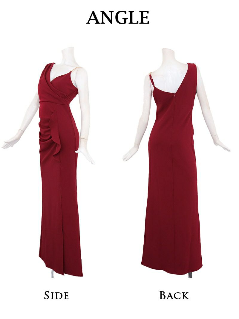 スリットとフリルで魅せる、エレガントな大人のタイトロングドレス。 先行予約割¥10280→¥9765!※一部予約販売※サイドフリルスリット入りタイトロングドレス 加賀美早紀 着用キャバドレス【Belsia】(S/M/L)(ブラック(L/3月中旬)/ホワイト(M/L/3月中旬)/ワイン)