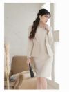 上品なモテ可愛いスーツ ライトツイード韓国風タイトセットアップスーツ【Belsia】(S/M/L/XL(2L))(ブラック/アイボリー)