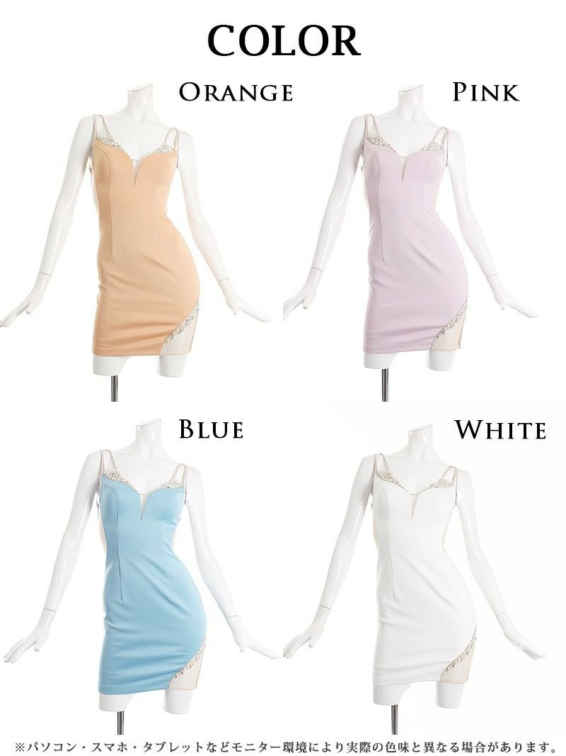 4. 【Angel R/エンジェルアール】ビジューストラップタイトミニドレス(S/M)(ホワイト/ブルー/ピンク/オレンジ)