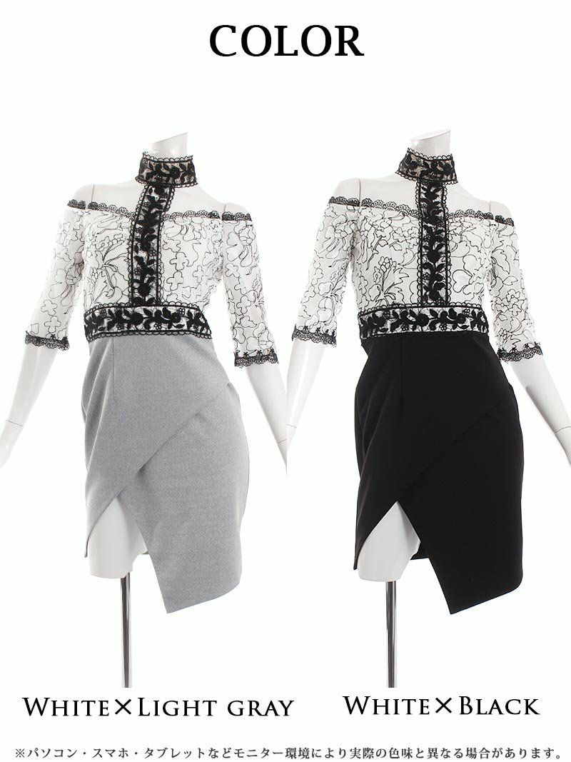 訳あり貴重なanのドレス 【訳ありアウトレット】オフショルレースミニドレス【an/アン】 (S/M)(ホワイト×ブラック/ホワイト×ライトグレー)