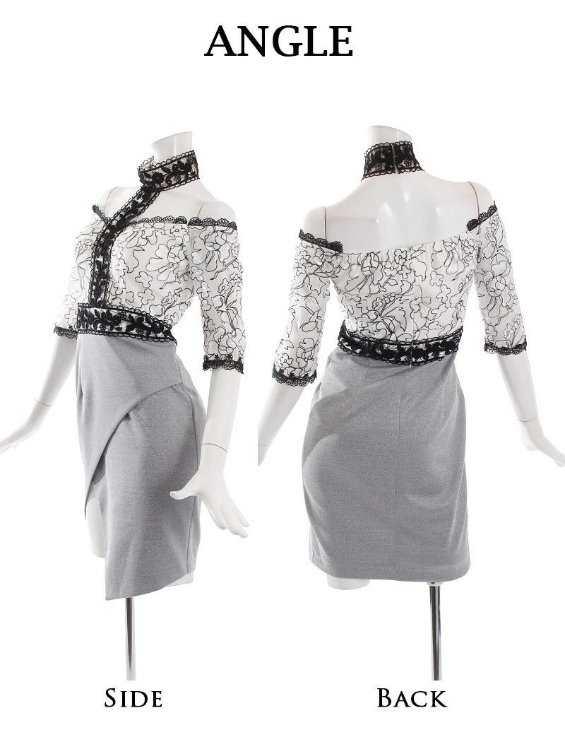 【an】より特別な訳ありアウトレットアイテム、華やかなオフショルレースミニドレス!1点限りのため、在庫がなくなり次第、販売終了となります。 繊細なレース使いが魅力的なオフショルデザインは、デコルテを美しく演出し、女性らしさを引き立てるポイント。セクシーさと上品さを兼ね備えたスタイルを楽しめます♪ シンプルながらも印象的なデザインで、キャバクラでの接客や特別な日のディナーにも最適。さまざまなシーンで活躍すること間違いなしのアイテムです◎ 厚手で高品質なストレッチ素材を使用しており、動きやすさを確保しながらも、どんなシチュエーションでもエレガントに着こなせる一着です!