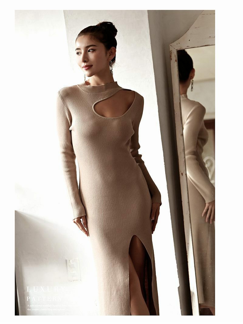 袖付きデザインのリブニットワンピースは露出も控えめだから同伴やアフターはもちろん、