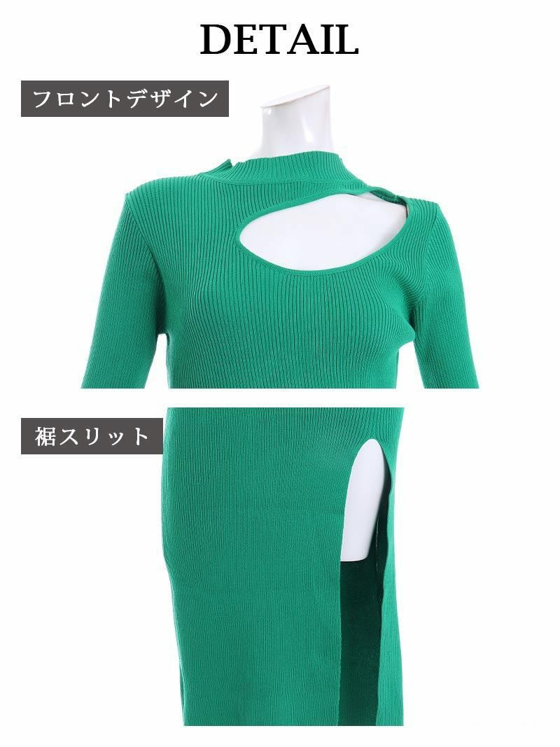 袖付きバストカットリブニットキャバワンピース【DAYS PIECE】