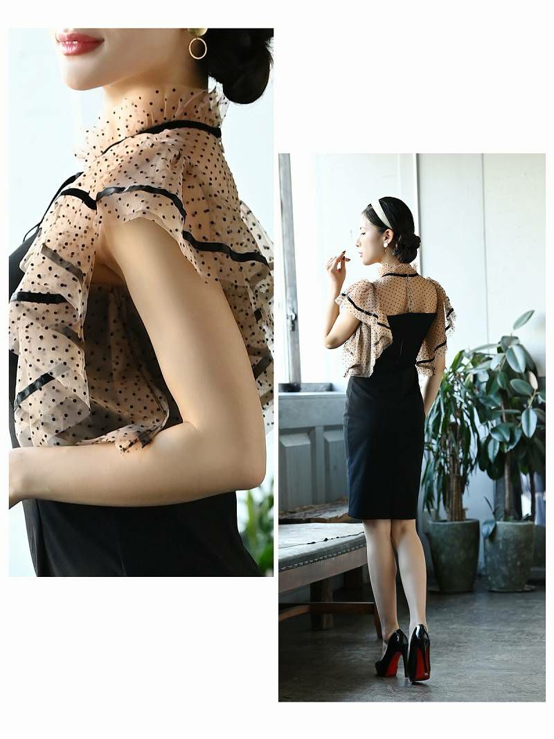 4. 【訳ありアウトレット】袖付ドット柄透け韓国キャバミニドレス【DAYS PIECE】(S/M/L)(ブラック)
