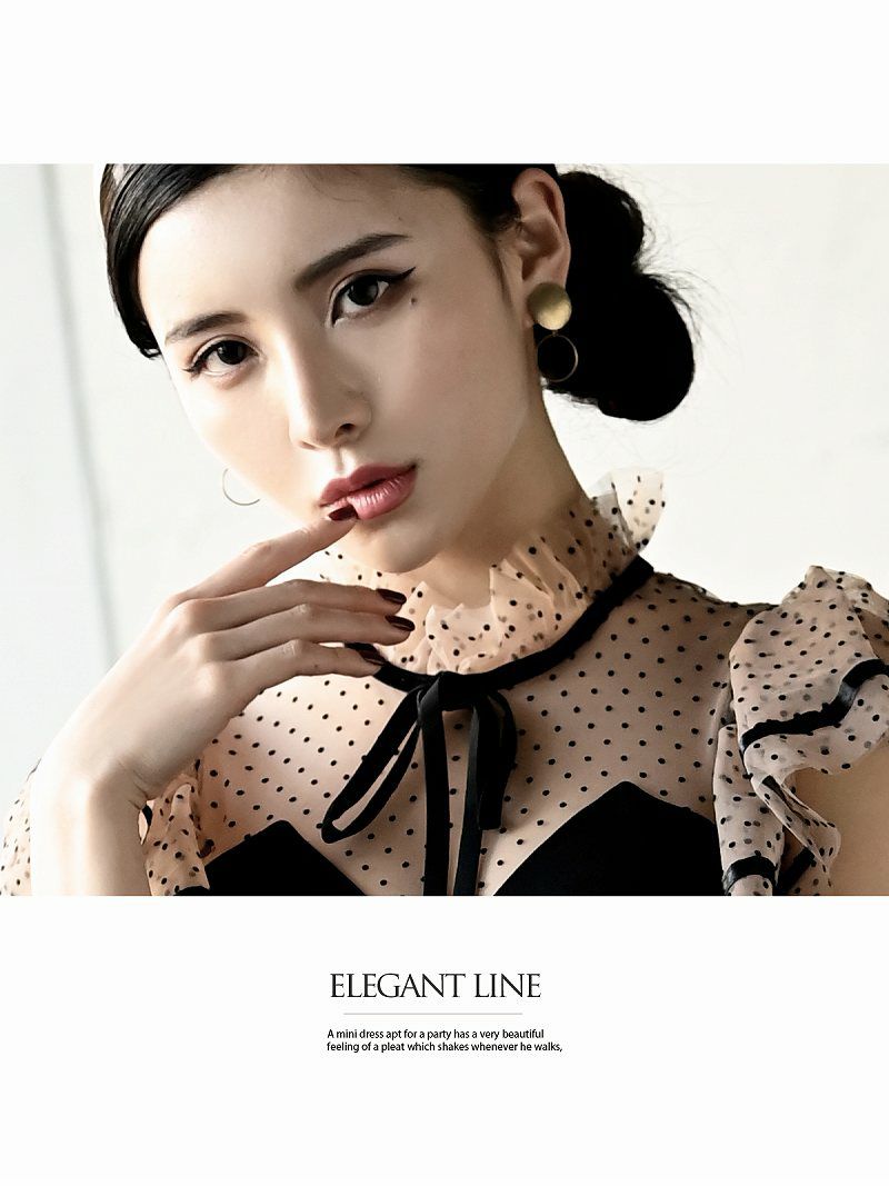 5. 【訳ありアウトレット】袖付ドット柄透け韓国キャバミニドレス【DAYS PIECE】(S/M/L)(ブラック)