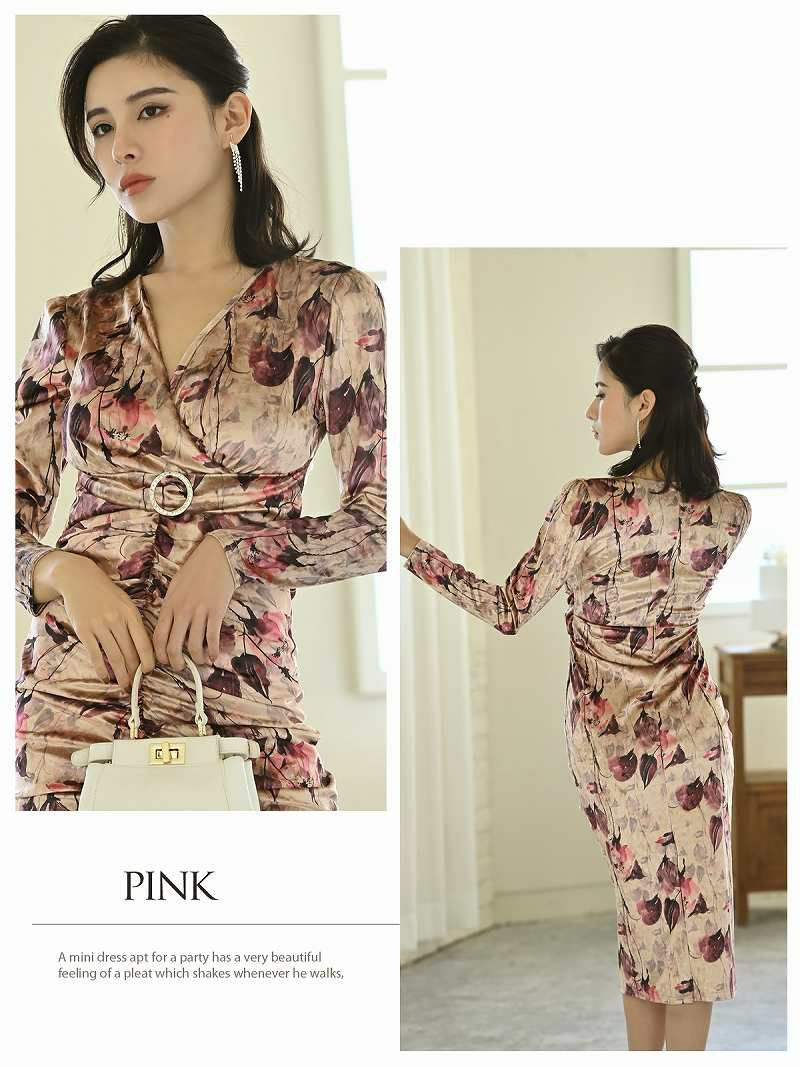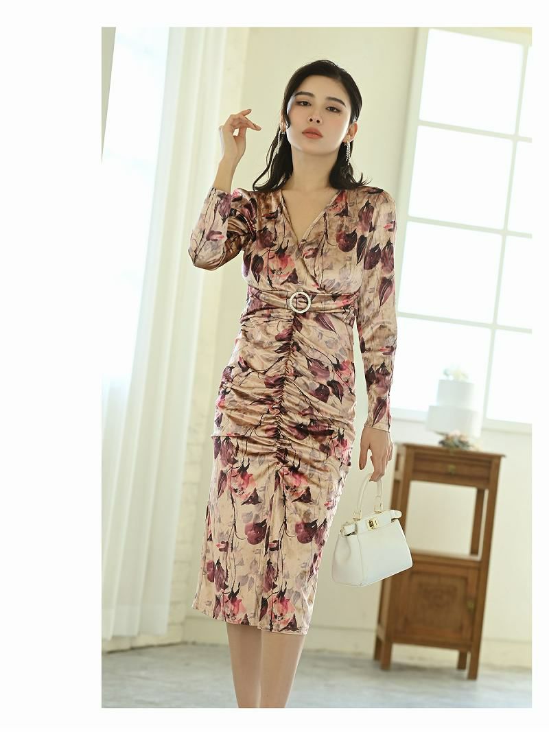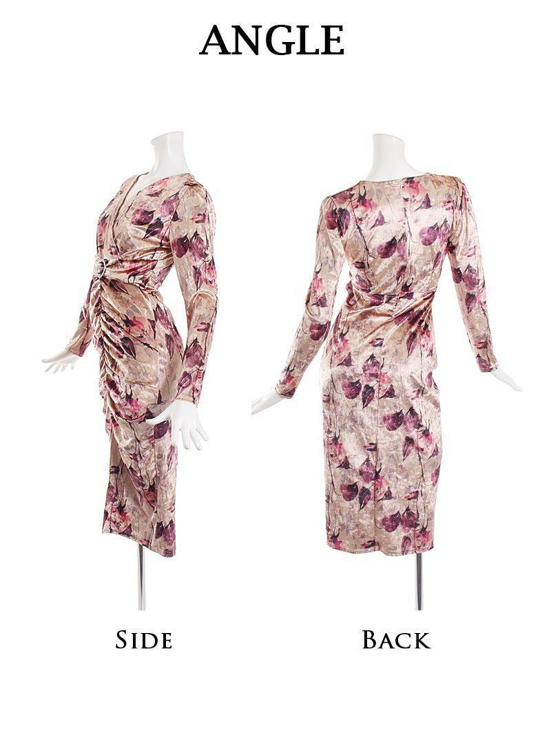 エレガントなビロード素材を使用した韓国キャバドレス。タイトなシルエットとシャーリングデザインで女性らしさを引き立てます。