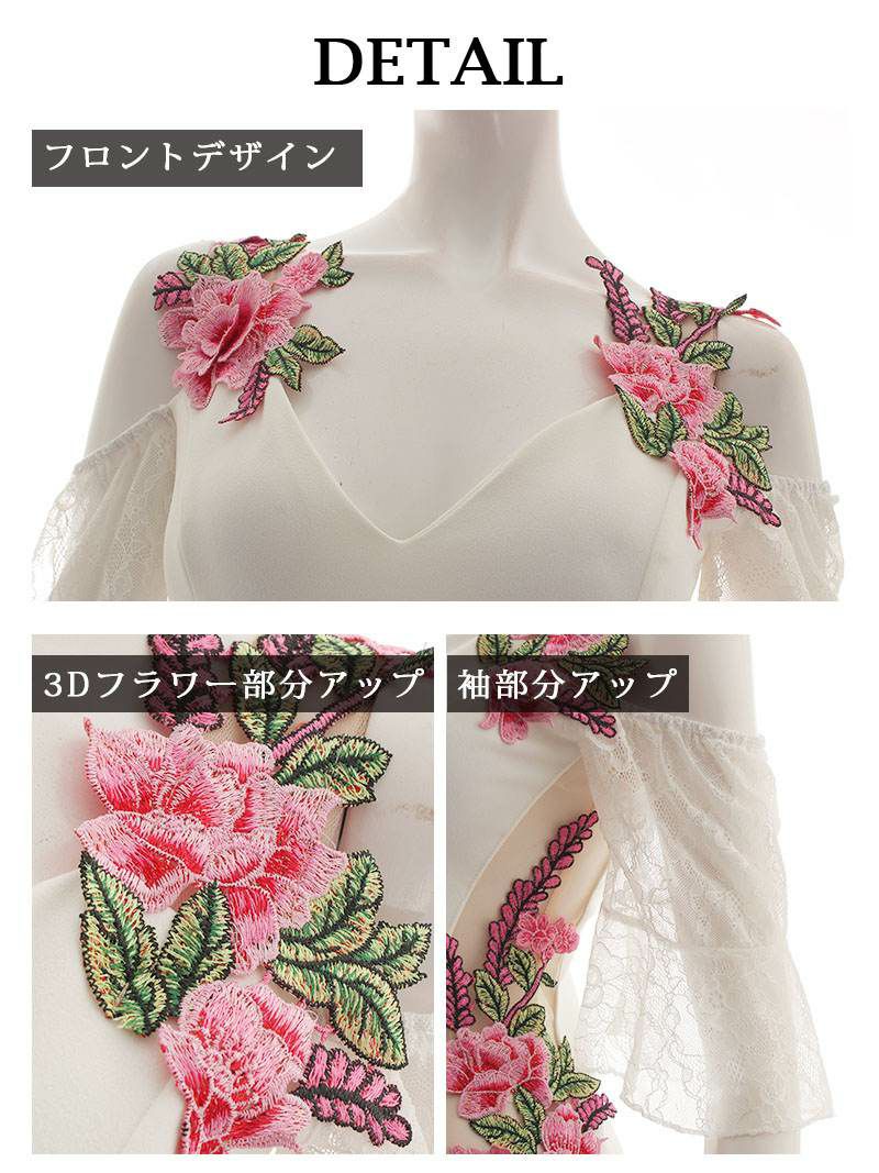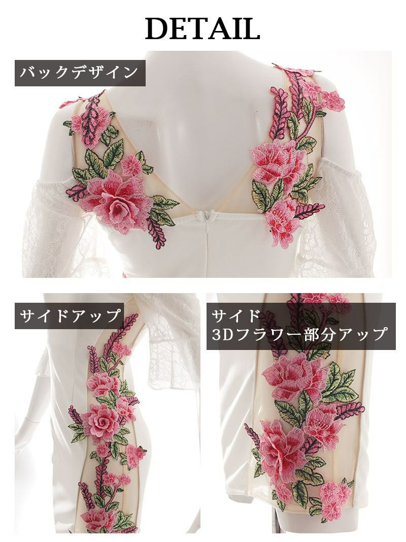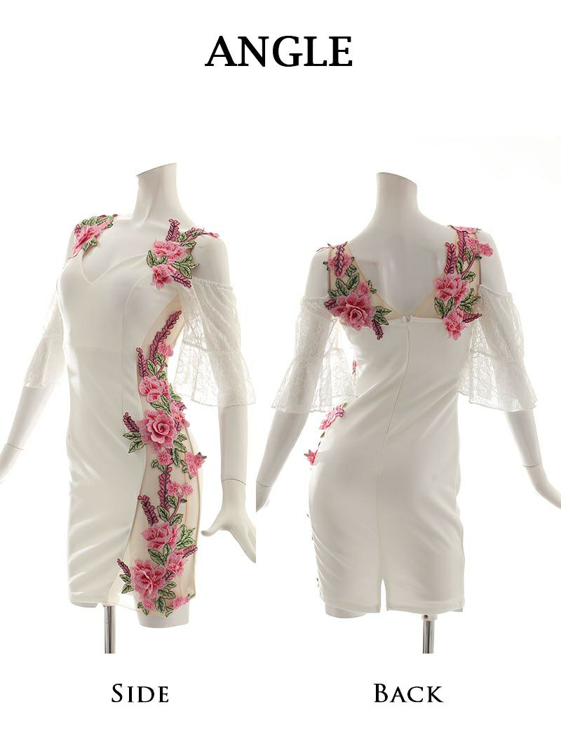 トレンドの3Dフラワー刺繍をふんだんに使った高級感溢れるタイトミニドレスは、キャバクラやラウンジで絶対目立てる一着。