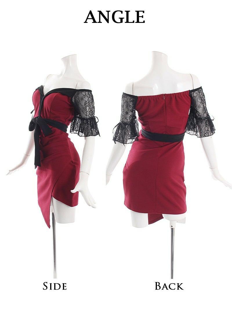 えちえち肌魅せで男性をメロメロに Sライン魅せサイドシアーブラックレースオフショルミニドレス ゆとりなお 着用キャバクラドレス【Ryuyu】(S/M/L)(バーガンディ/ターコイズ) ptpl