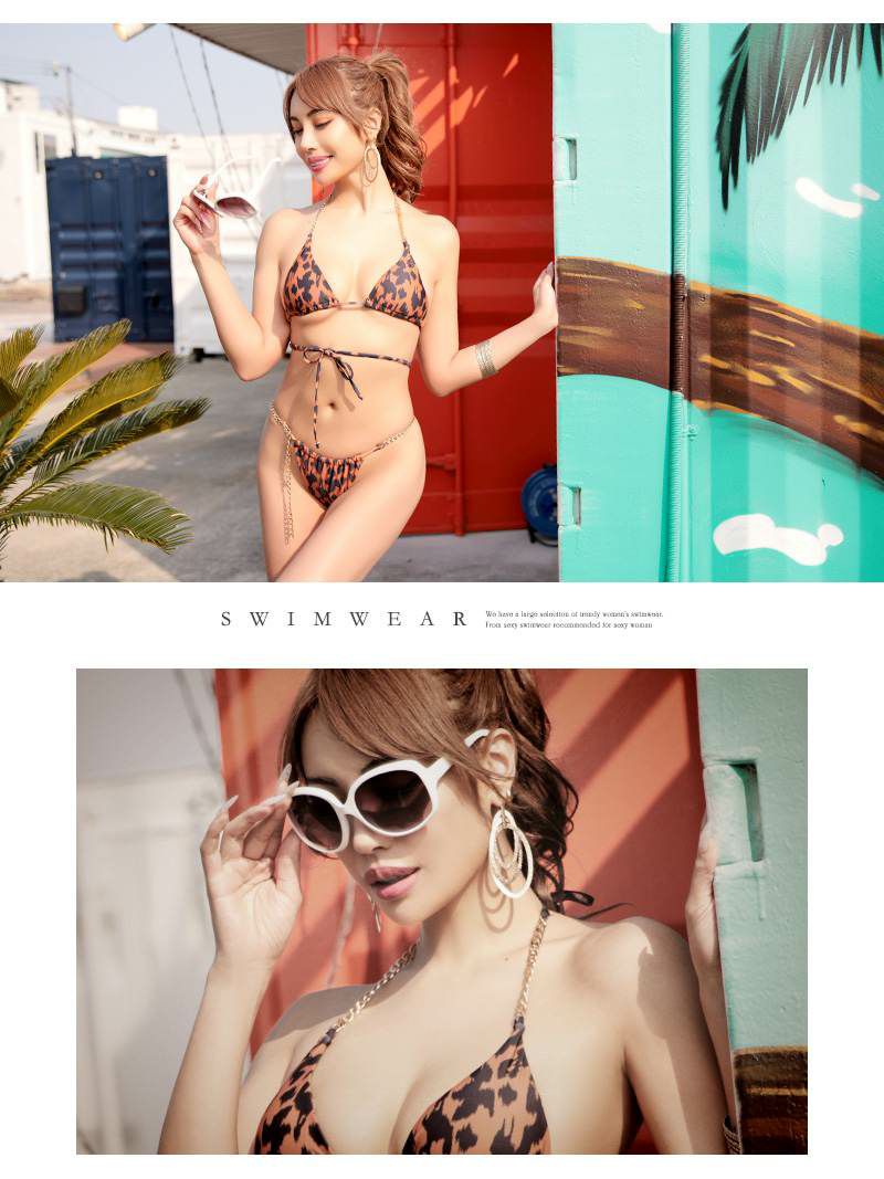 エロかわいいアニマル柄ビキニで映え! 水着 ヒョウ柄シクシーインポート風三角ビキニ HARUKA着用【Ryuyu】(フリーサイズ)(ブラウン/パープル)