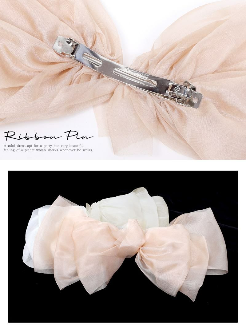 ぱっと華やかな印象を与える! スーパーセール¥1890→¥944! シフォンリボンヘアクリップアクセサリー【Ryuyu】(フリーサイズ)(ベージュ/アイボリー)