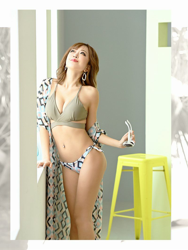ボタニカル柄がリゾート感満載! 水着 ボタニカル柄ガウン付きハイレグビキニ3点セット ゆずは まぁみ れいたぴ 着用ギャル水着【Ryuyu】(S/M/L)(ピンク/オレンジ/ブラック)