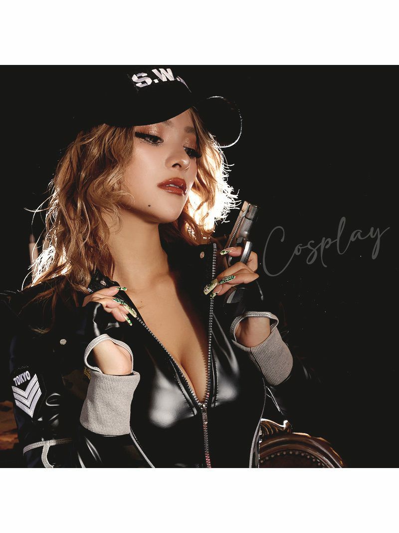 コスプレ セクシーレザーミニスカSWATガールコスプレ まあみ 着用 レディースポリスコスプレ7点セット【Ryuyu】