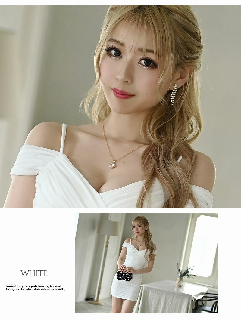 4. 【訳ありアウトレット】谷間見せワンカラーキャバミニドレス【Ryuyu】(M/L)(ネイビー/ブルー/ワイン/ホワイト/ピンク) ptpl