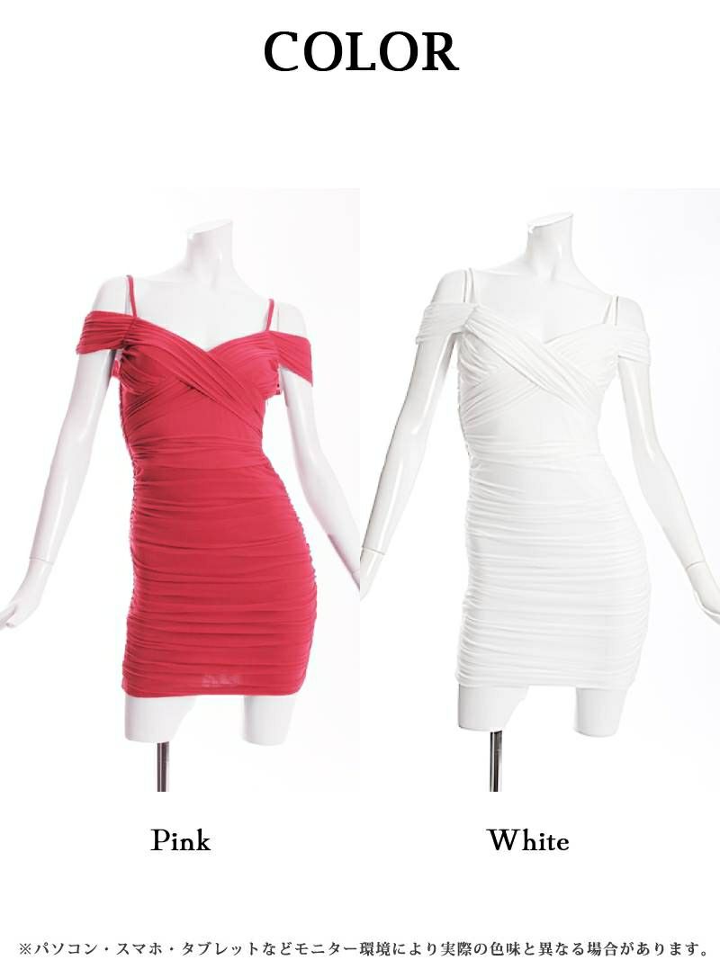 5. スーパーSALE¥4380→¥3333! ワンカラーオープンショルダータイトキャバドレス ゆずは りせり 着用ミニドレス【RyuyuChick】(M/L)(ホワイト/ピンク)
