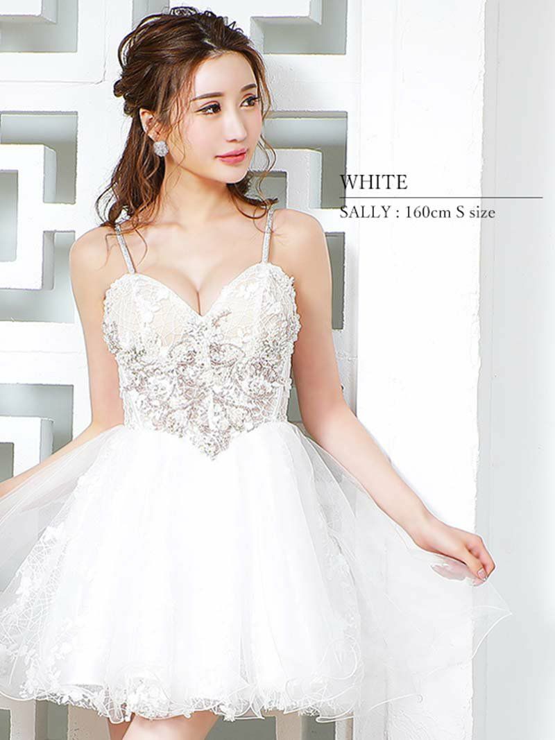 人気のハートカットドレスでお姫さま気分♪ 【Angel R/エンジェルアール】フレアデザイン刺繍チュールフレアミニドレス(S/M)(ホワイト/レッド)