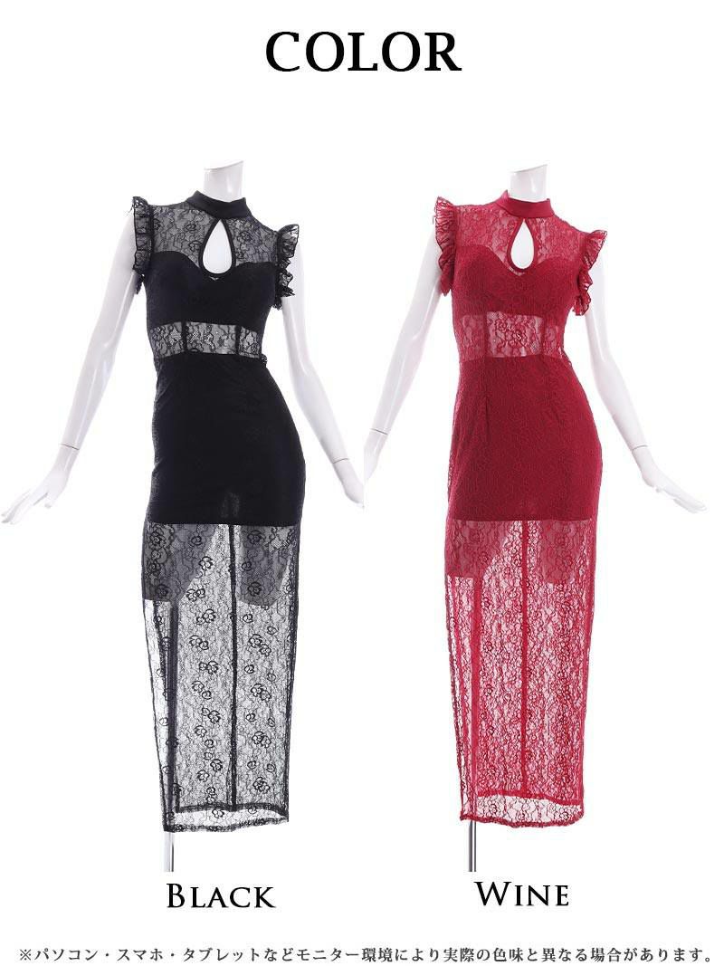 4. 総レーススリットロングドレス みりちゃむ ゆずは 着用【Ryuyu】(S/M/L)(ブラック/ワイン) ptpl