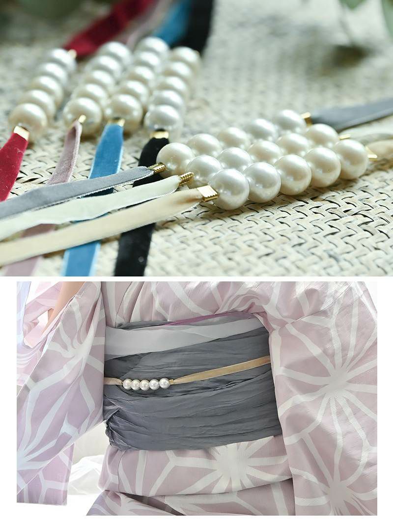 5. ホワイトパールベロア飾り帯紐【Ryuyu】(フリーサイズ)(ピンク/グレー/ワイン/クリーム/ターコイズ/ベージュ/ブラック)