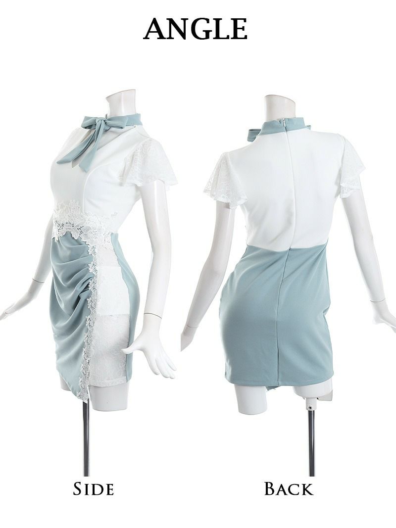 4. 【訳ありアウトレット】レース袖付シアーえちタイトキャバミニドレス【Ryuyu】(S/M/L)(ミント/ピンク/グレー) ptpl