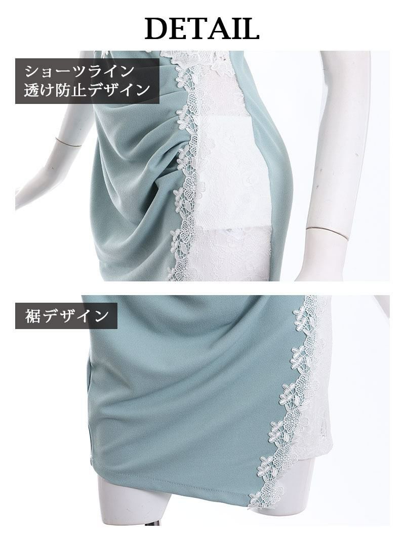 5. 【訳ありアウトレット】レース袖付シアーえちタイトキャバミニドレス【Ryuyu】(S/M/L)(ミント/ピンク/グレー) ptpl