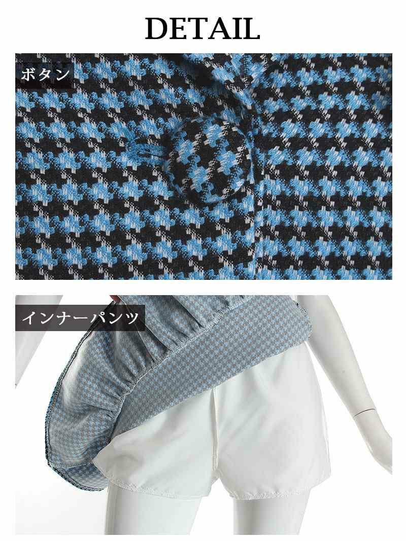 4. 【訳ありアウトレット】ツイードチェック柄ジャケットスカートキャバスーツ【Ryuyu】(M)(ブラック/ピンク/ブルー)