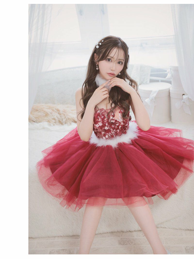 ふんわり広がるチュールスカートが存在感たっぷりのサンタドレス。