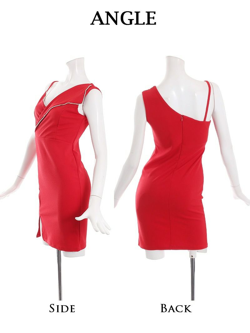 さりげないラインビジューが可愛い♪ スーパーSALE¥2990→¥2333! アシメトリービジューラインタイトキャバドレス りせり 着用ミニドレス【RyuyuChick】(M/L)(ホワイト/ブラック/レッド)