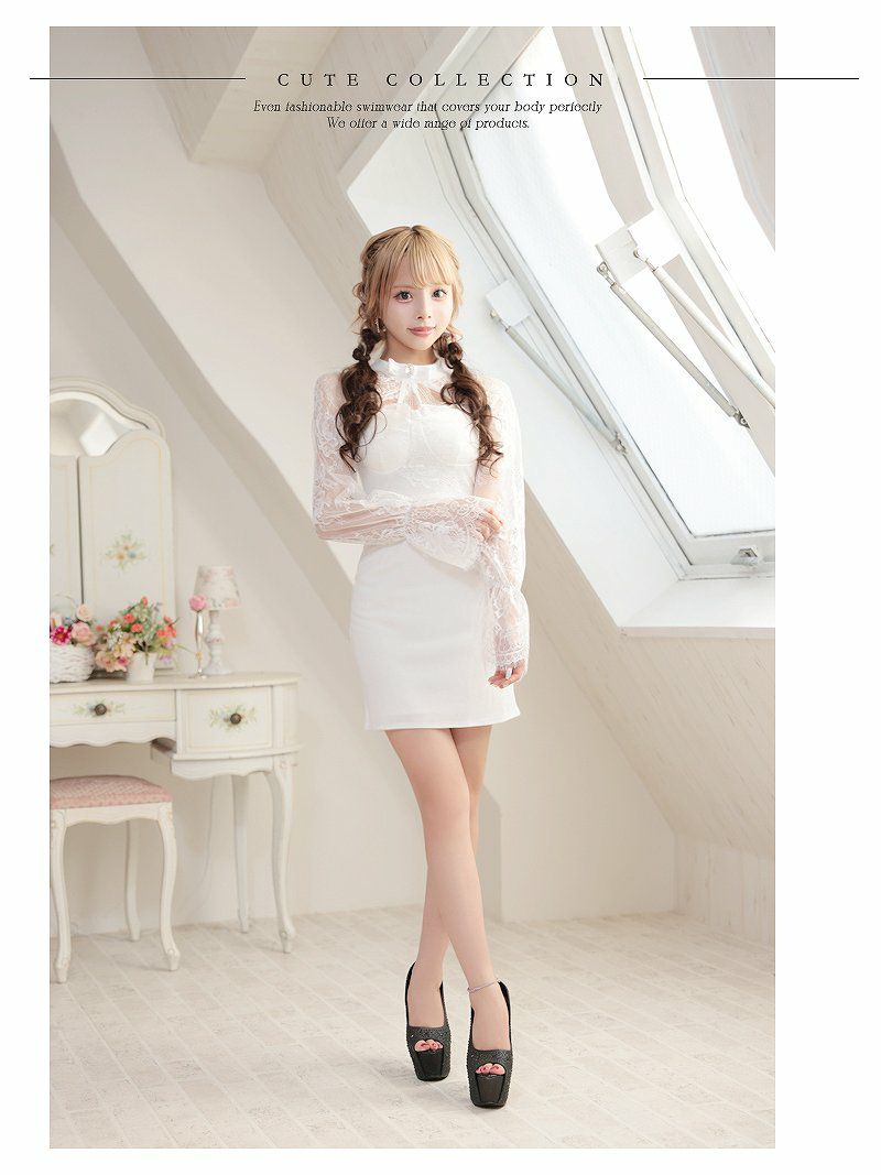5. 先行予約割¥4380→¥4160!※一部予約販売※バストカットレース袖タイトミニドレス あいさ 着用 キャバドレス【RyuyuChick】(S/M/L/XL(2L))(ブラック/ホワイト)