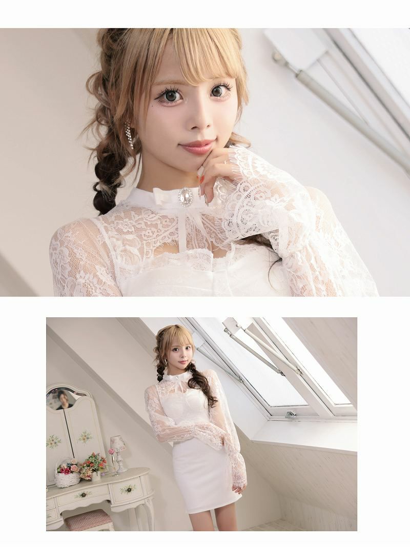 ※一部予約販売※バストカットレース袖タイトミニドレス あいさ 着用 キャバドレス【RyuyuChick】