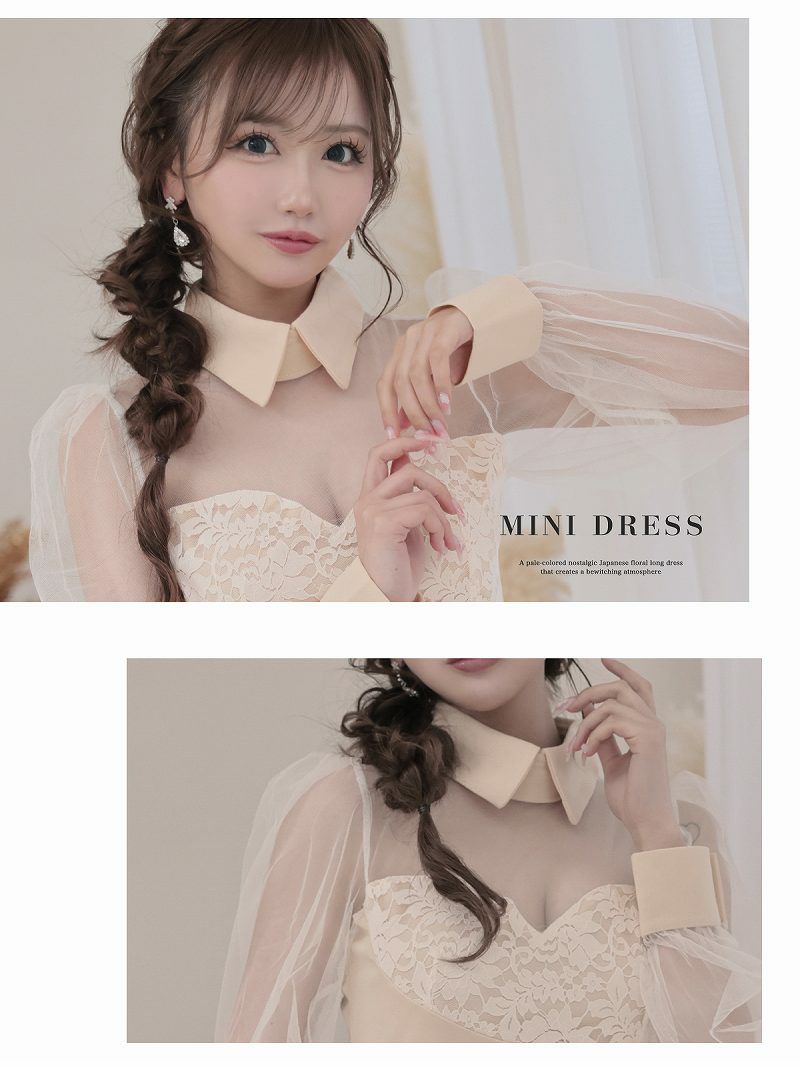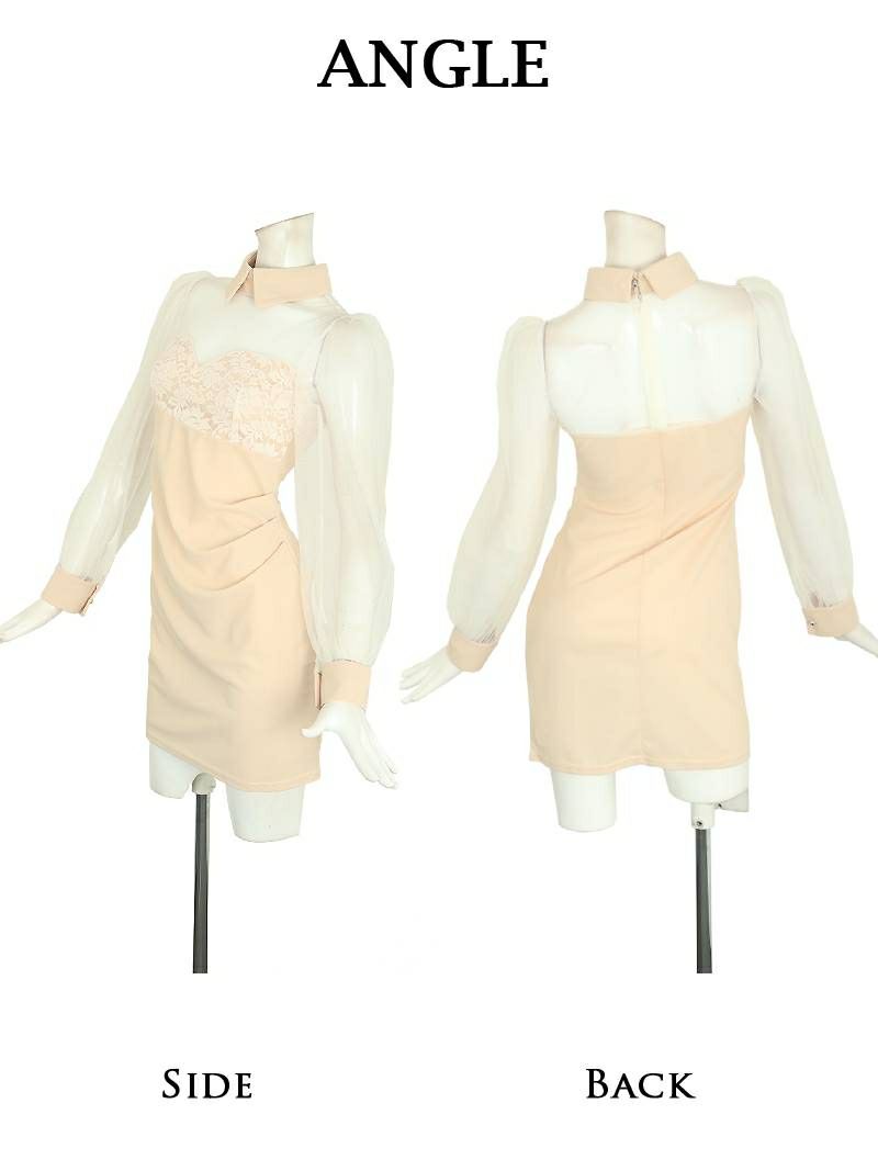 襟付きシースルーデザイン袖付きミニドレス りせり 着用 キャバドレス【RyuyuChick】