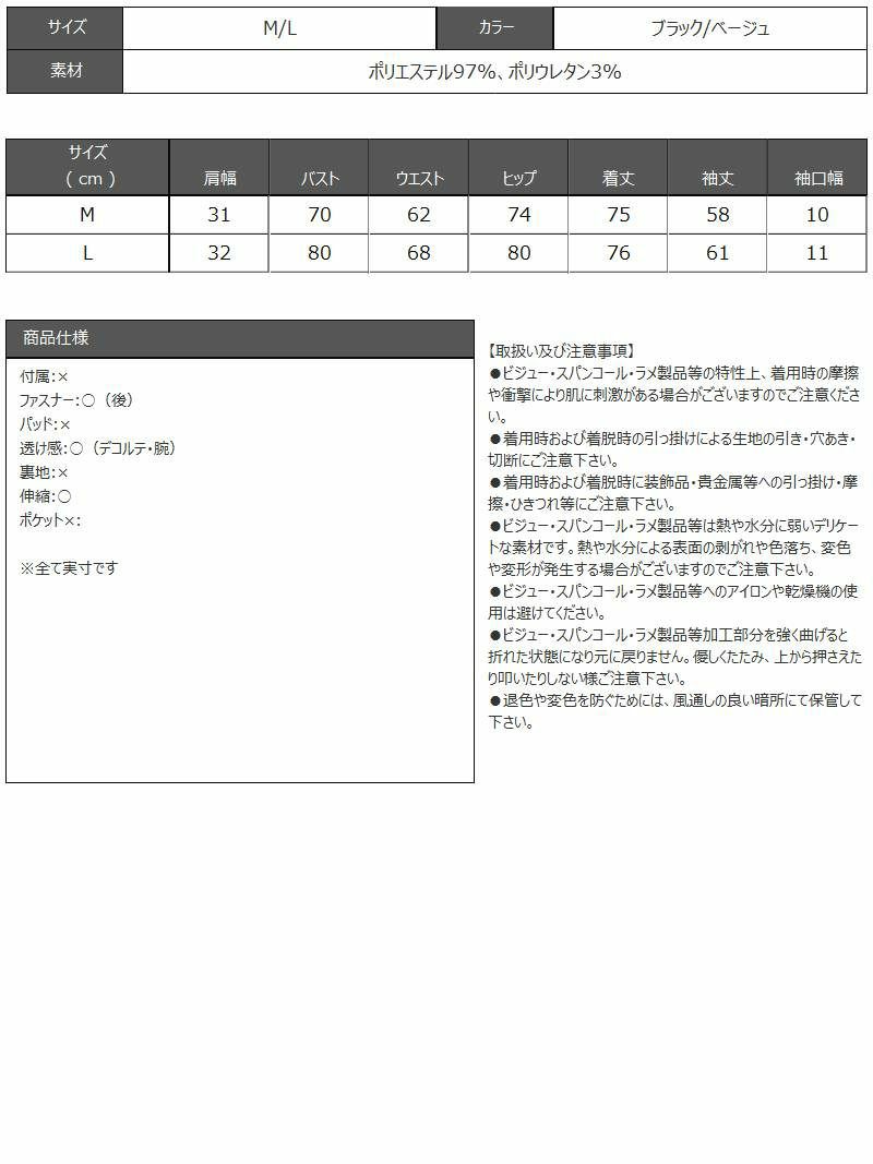 7. 先行予約割¥2990→¥2841!※一部予約販売※襟付きシースルーデザイン袖付きミニドレス りせり 着用 キャバドレス【RyuyuChick】(M/L)(ブラック/ベージュ)