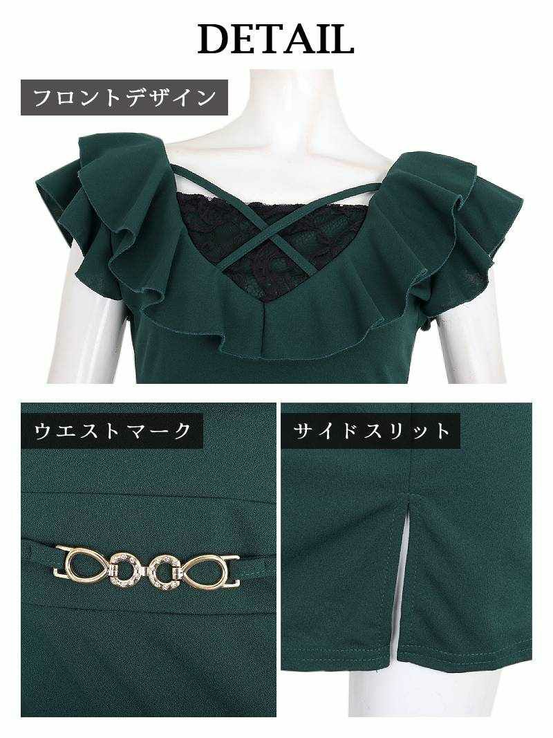 5. 谷間隠しデザインのフリル袖付きキャバドレス りせり 着用 ミニドレス【RyuyuChick】(M/L)(グリーン/ネイビー/ワイン)