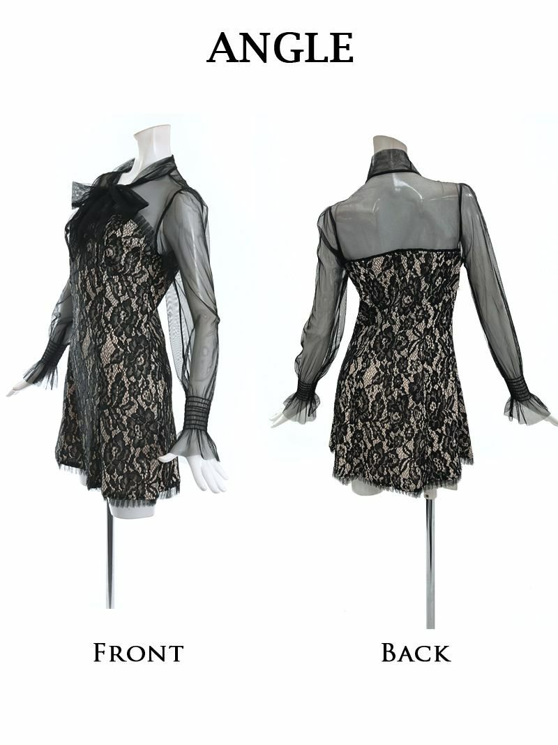 袖付きデザインと透け感レースが、キャバドレスやラウンジシーンに最適な華やかさをプラス。