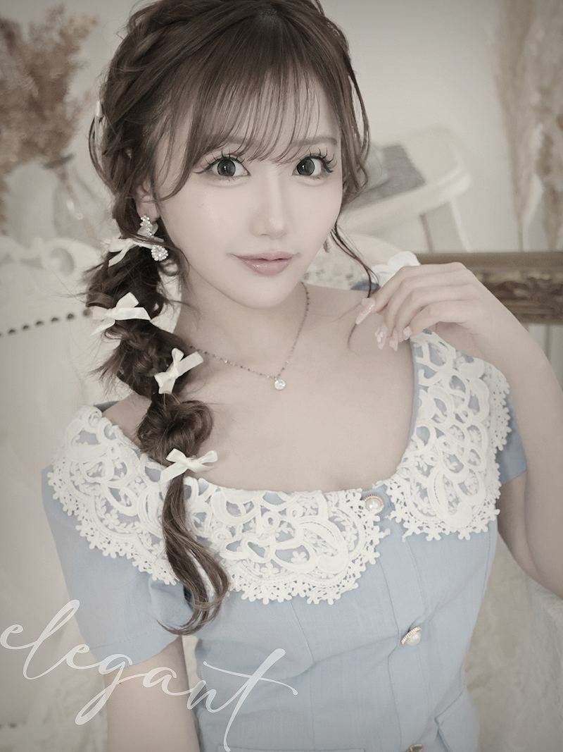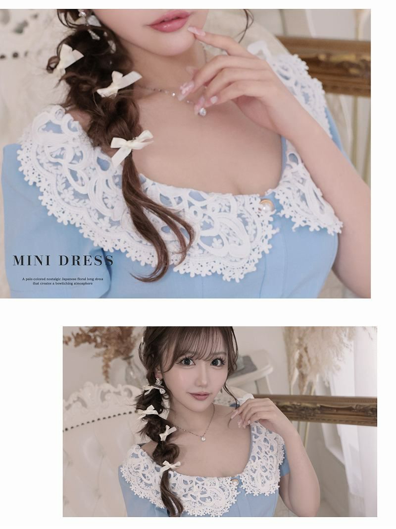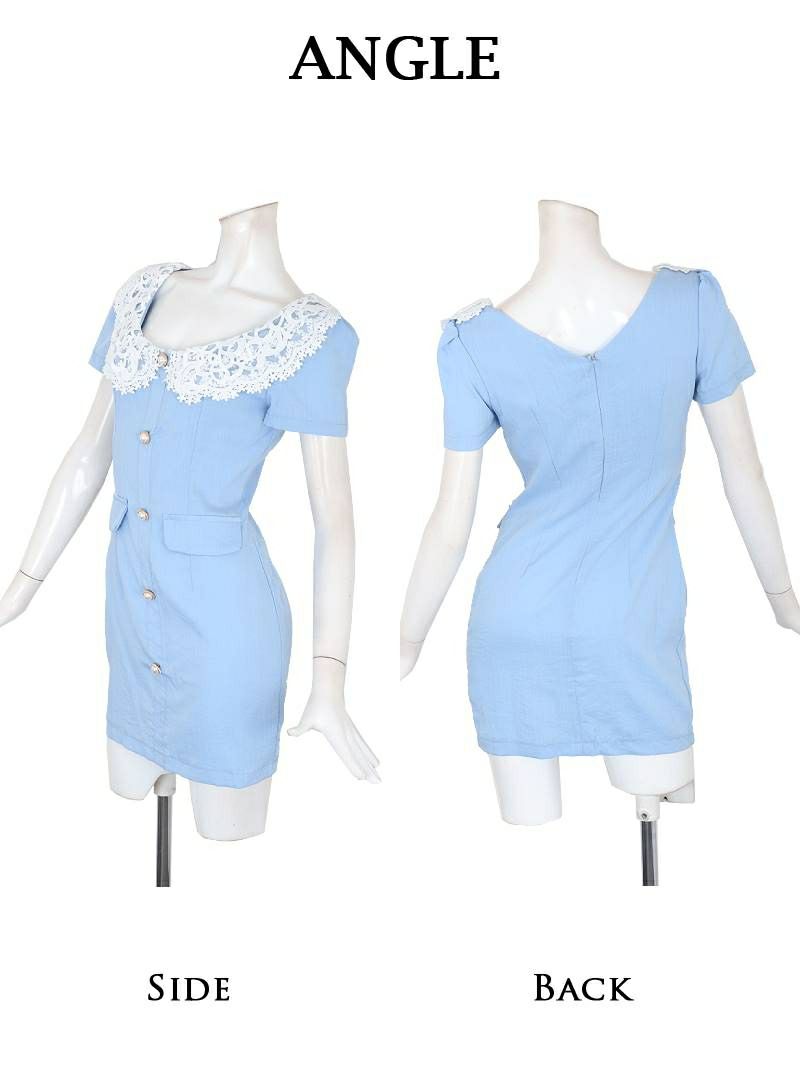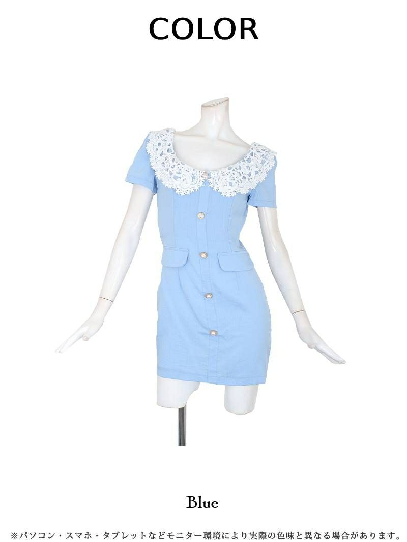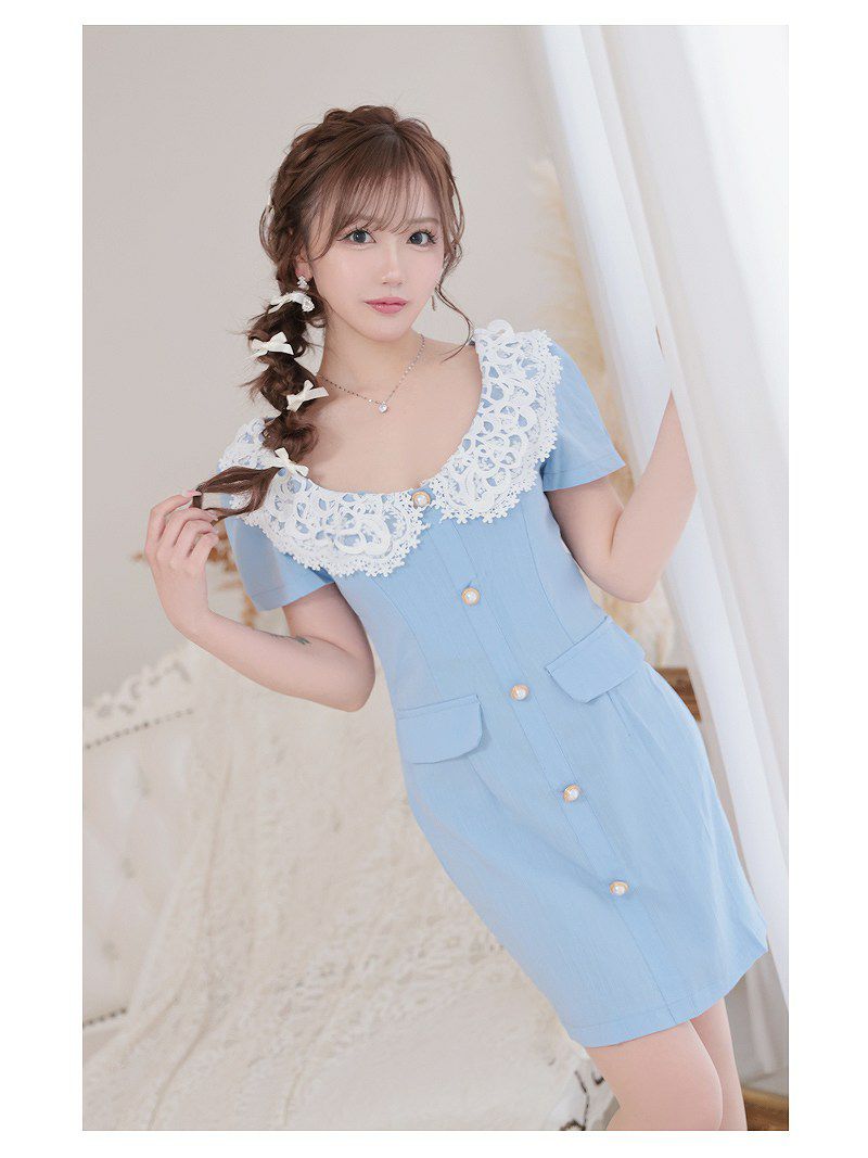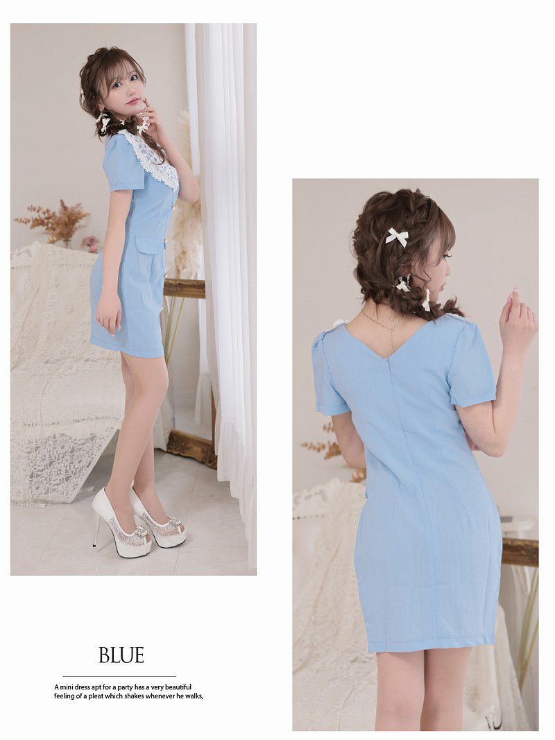 春ブルーレース襟韓国風キャバワンピース りせり 着用ミニドレス【RyuyuChick】