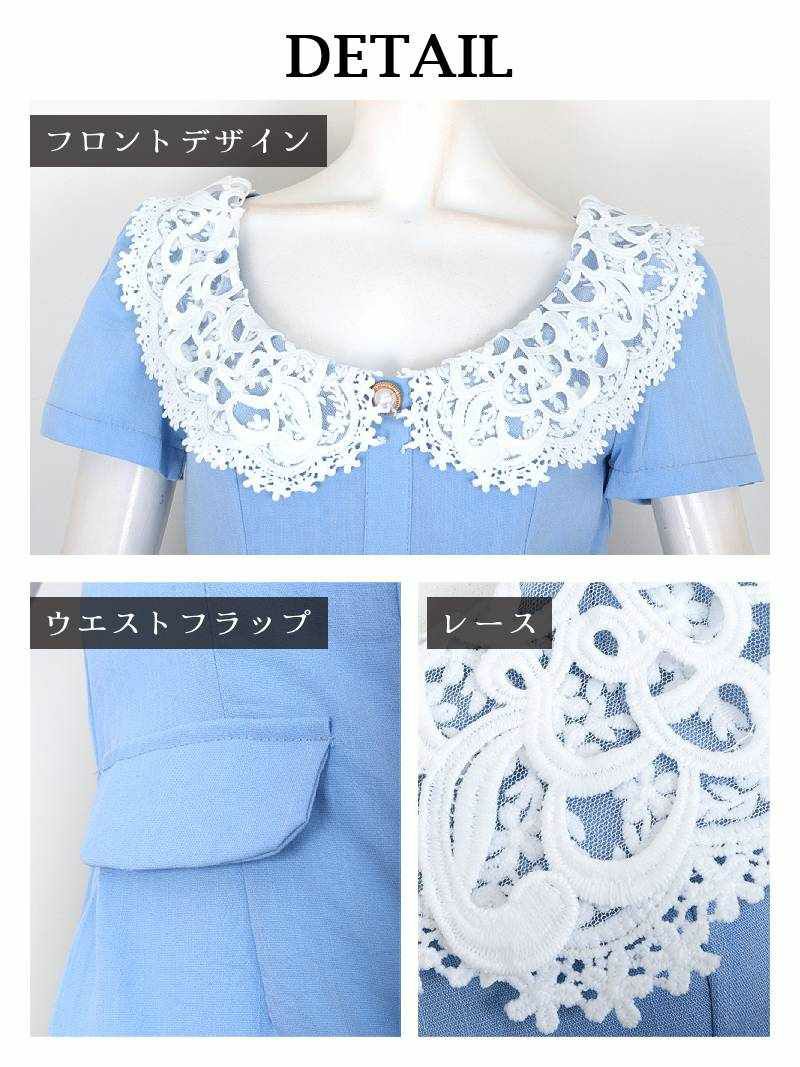 4. スーパーSALE¥3980→¥2333! 春ブルーレース襟韓国風キャバワンピース りせり 着用ミニドレス【RyuyuChick】(S/M/L/XL)(ブルー)