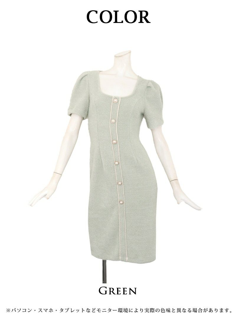 上品に映える高見えニットワンピで同伴もお出かけも♪ 先行予約割¥4380→¥4160!※一部予約販売※韓国風グリーンニットクラシカルキャバワンピース りせり 着用 キャバドレス【RyuyuChick】(S/M/L/XL(2L))(グリーン)
