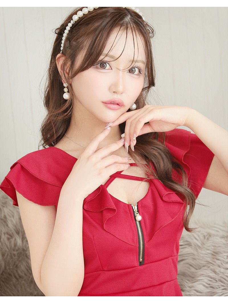 ※一部予約販売※ふんわりフリルシルエットプチプラミニドレス りせり 着用 キャバドレス【RyuyuChick】