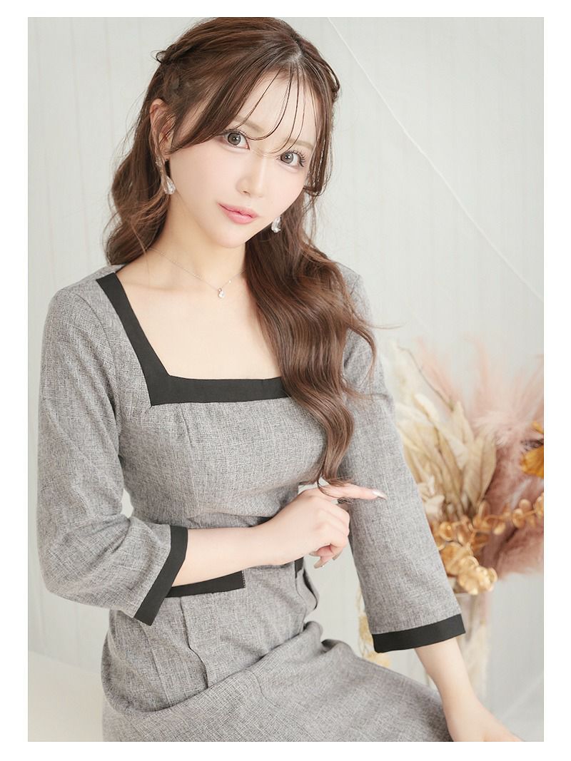 グレー五分袖タイト膝丈キャバワンピース りせり 着用 キャバドレス【RyuyuChick】