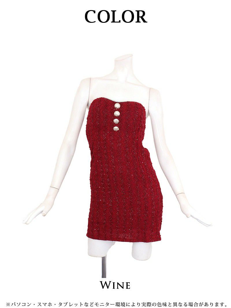 6. 先行予約割¥4380→¥4160!※予約販売※煌めくスパンコールツイードが目を引くゴールドボタン付きベアタイトミニドレス【RyuyuChick】(S/M/L)(ワイン)