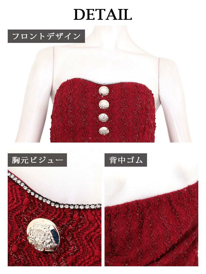 4. 先行予約割¥4380→¥4160!※予約販売※煌めくスパンコールツイードが目を引くゴールドボタン付きベアタイトミニドレス【RyuyuChick】(S/M/L)(ワイン)