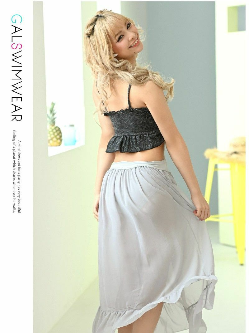 ロンスカ付きで気になる下半身をしっかり隠せる体型カバー水着。 ストラップ外せばバンドゥにもなる2wayビキニ◎ キラッと輝くフリルブラが超フェミニンで映え確定 ホテルからそのままビーチ行ける楽ちん3点セット お腹見せ控えめでもおしゃれ見えする神ビキニ!