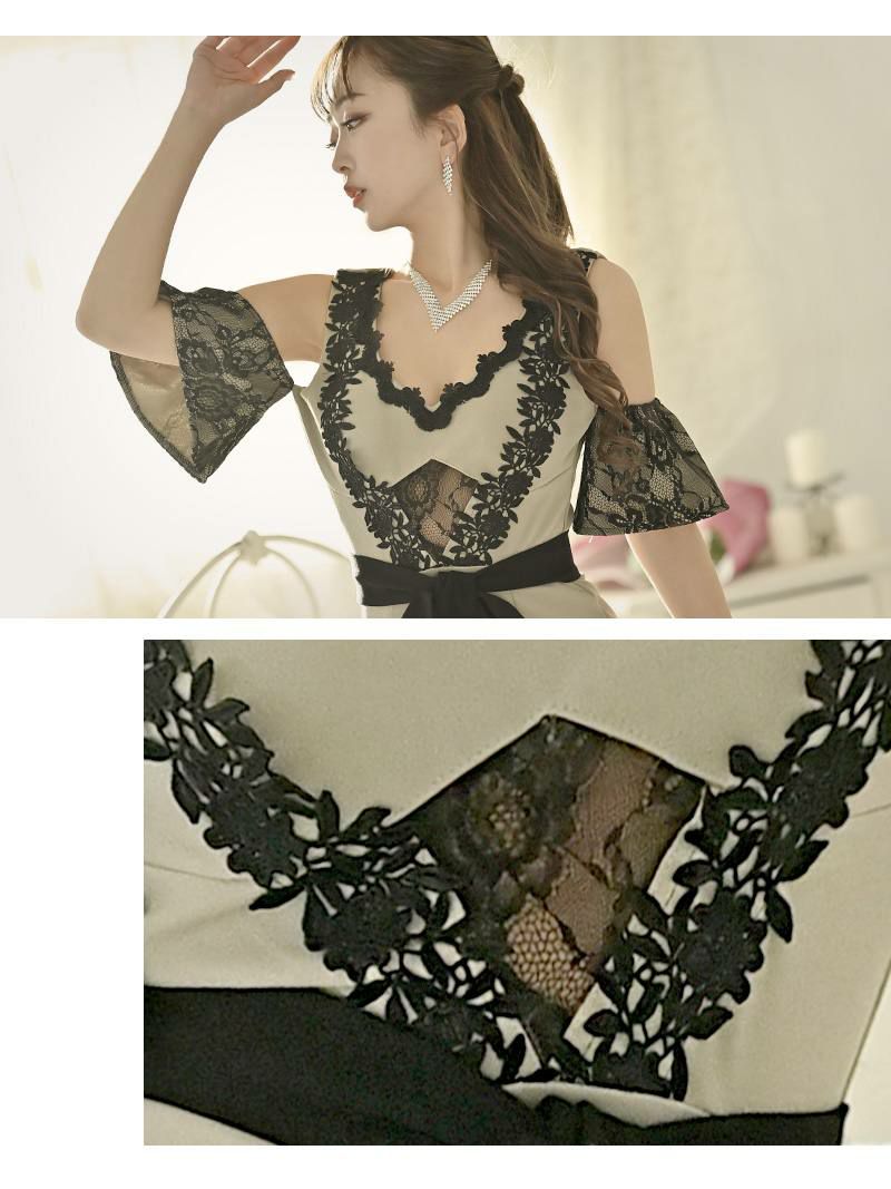 7. スーパーSALE¥6980→¥4332! ウエスト透け袖ありオープンショルダーキャバドレス みりちゃむ 着用ミニドレス【Ryuyu】(S/M/L)(ブラック/グレージュ)
