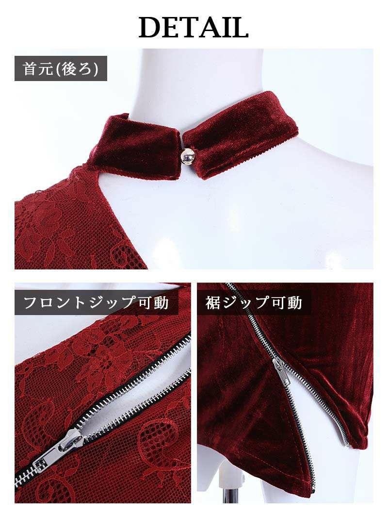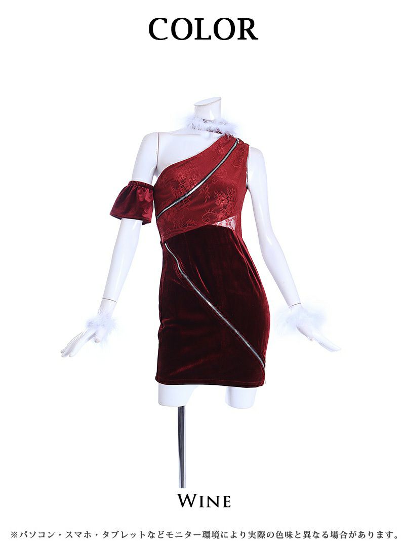 4. サンタコスプレ ジップデザインワンショルベロアサンタドレス みりちゃむ 着用 サンタコスプレ【Ryuyu】(S/M/L)(ワイン)