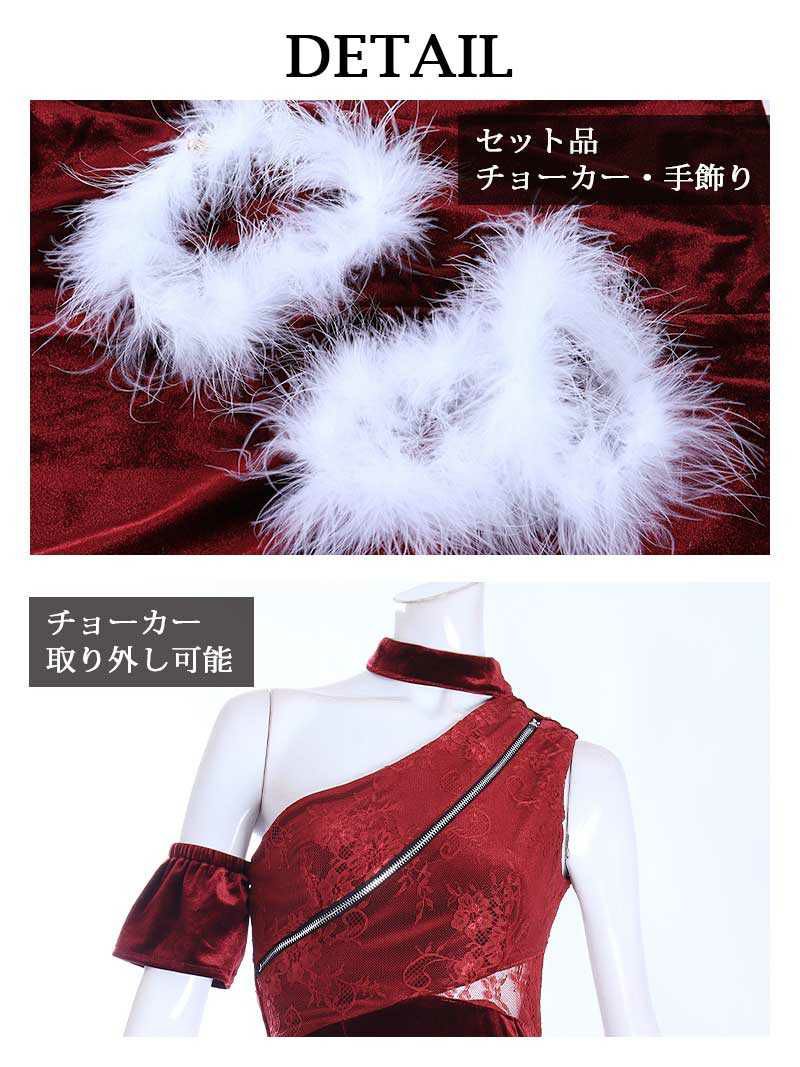 ※予約販売※ジップデザインワンショルベロアサンタドレス みりちゃむ 着用 サンタコスプレ【Ryuyu/リューユ】