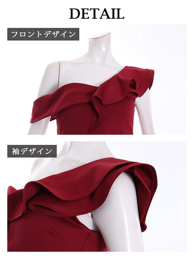4. スーパーSALE¥7180→¥6333! フリルラインワンショルダーキャバドレス まぁみ 着用 ミニドレス【Ryuyu】(S/M/L)(ブラック/ホワイト/ワイン)